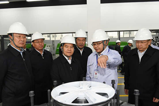 4月28日,自治區(qū)黨委書記、人大常委會主任李紀(jì)恒在包頭市調(diào)研盛泰輪轂生產(chǎn)經(jīng)營及后期項目建設(shè)情況。內(nèi)蒙古日報社融媒體記者 袁永紅 攝
